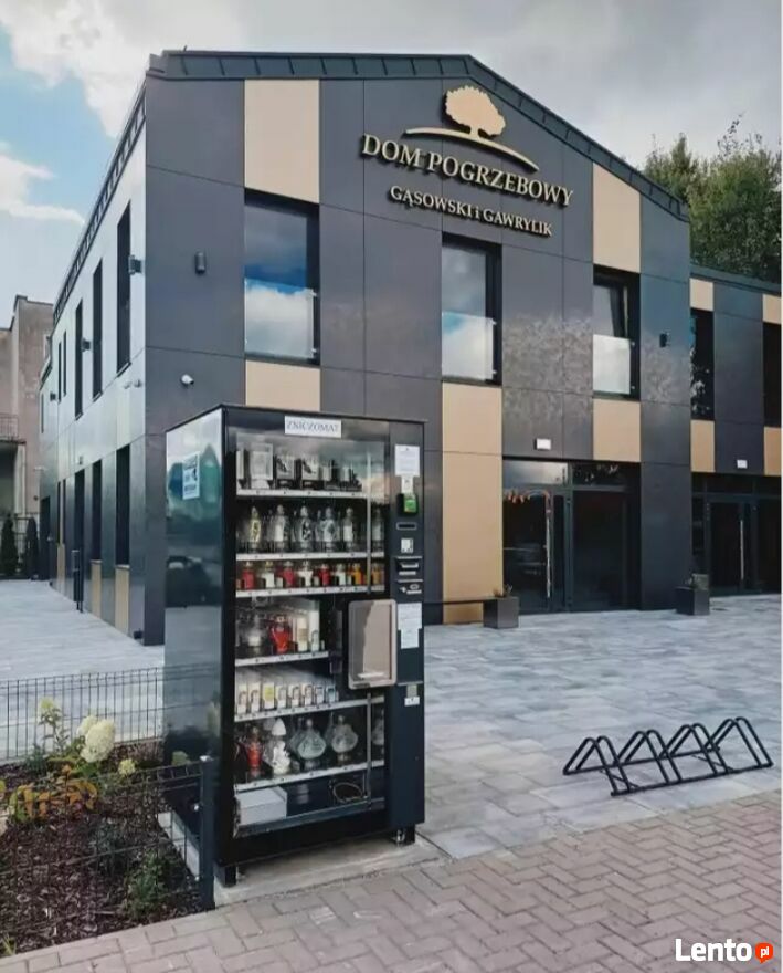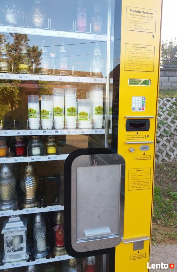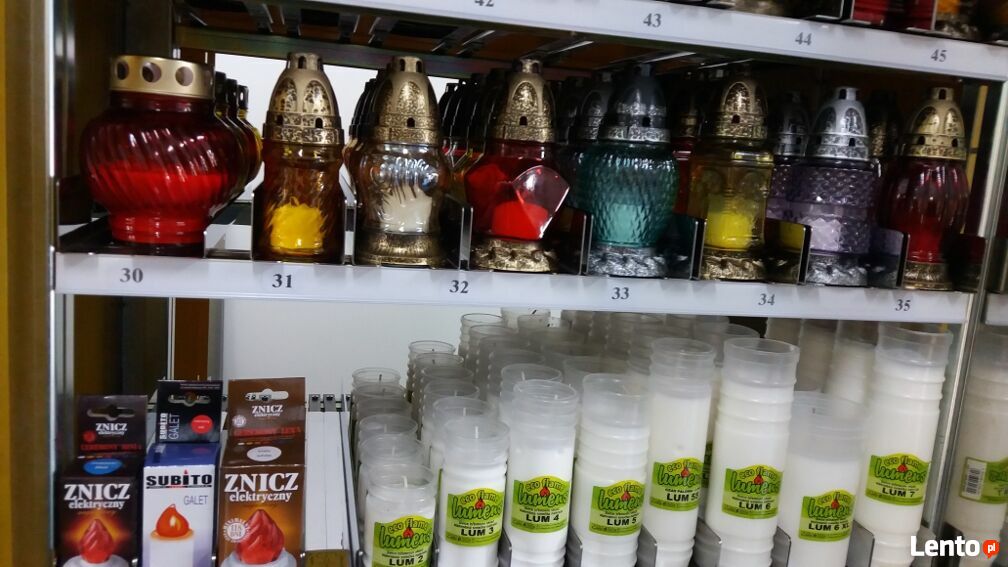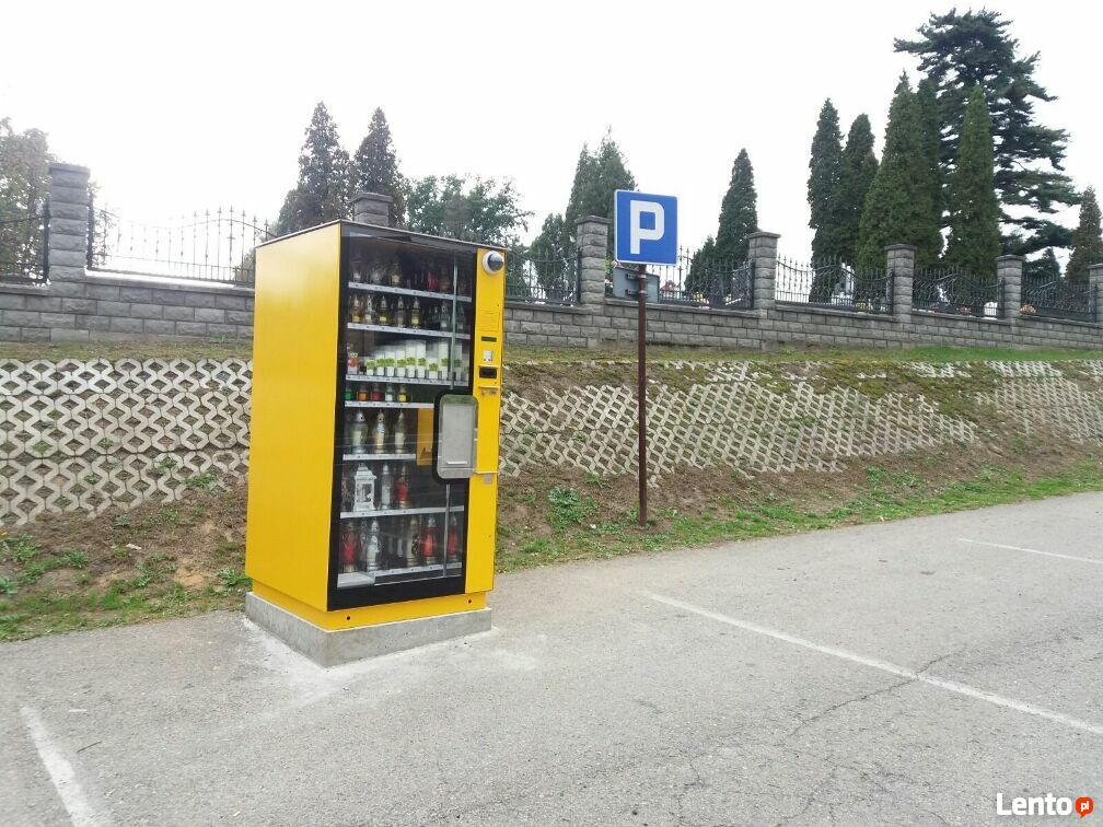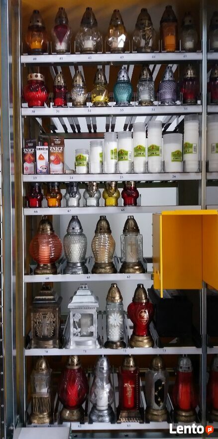 - duży przeszklony automat z windą do sprzedaży zniczy i wkładów do zniczy.